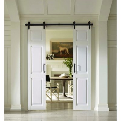 Colonial six panel passage door, unfinished, 36x96x1.375 by frameport. Usually, we recommend the track length should be at least 2 times the doors width or the opening. All hardware is included for an easy installation. With 6 panel colonial double barn you combine a classic look with a hot trend. Since barn doors slide instead of swing, you can save up to 10 square feet in clearance.